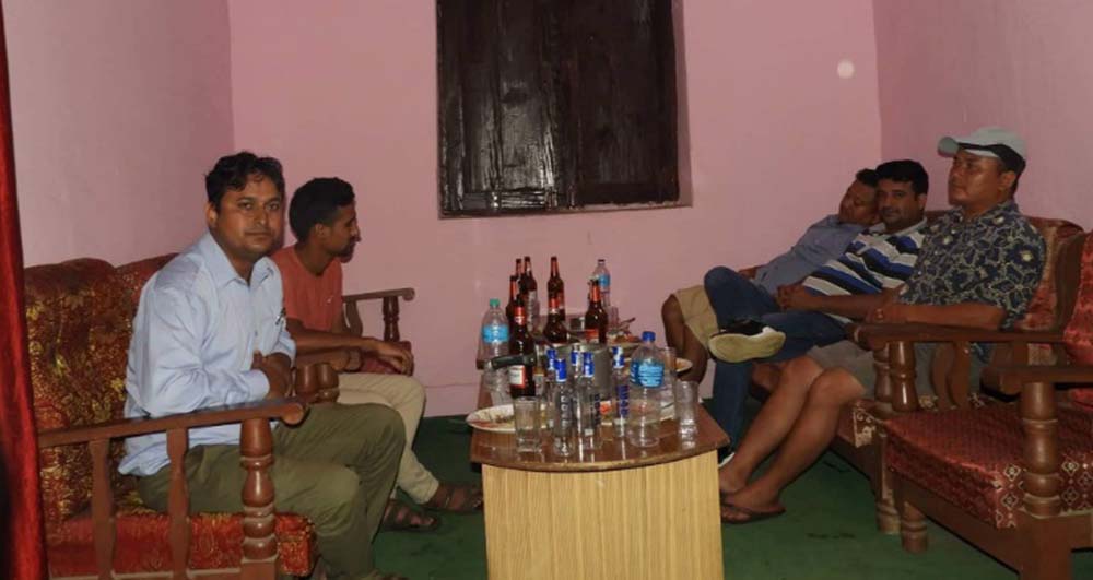 साउन १८ सुर्खेत । नेत्र विक्रम चन्द (विप्लव) नेतृत्वको नेकपाका कार्यकर्ताहरुले कृषि विकास कार्यालयका प्रमुखको कार्यकक्षमै कर्मचारी सहितको मदिरा पार्टी गर्दै गर्दा फेला पारेका छन ।