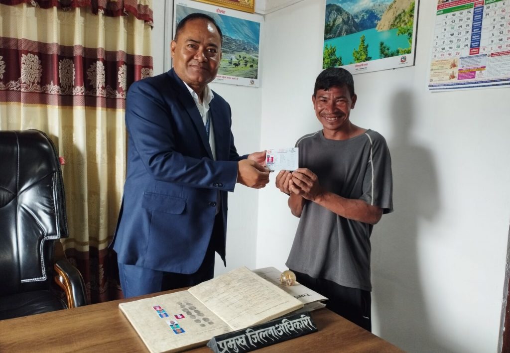 भाद्र २० दैलेख । नागरिकतामा लेखिएको अपमानीत नामले पीडा भोग्दै आएका दैलेखको दुल्लू नगरपालिका वडा नम्बर–१ दुल्लू बजारका ३९ वर्षीय फणिन्द्र बादीले अहिले हिनताबोधबाट मुक्त भएको महशुस गरेका छन । अपमानीत नाम फ्याउरे बादीलाई सच्याएर उनले फणीन्द्र बादी नामको नागरिकता प्रतिलिपी लिए पछि उनले हिनताबोधबाट मुक्त भएको महशुस गरेका हुन । त्यतीबेला फ्याउरेनाम नराखिदिन आग्रह गर्दा पनि तत्कालिन दुल्लू गाविस सचिव डिलबहादुर थापाले गरेको सिफारिसका आधारमा नागरिकतामा ‘फ्याउरो बादी’ लेखिएको उनले बताए । त्यसबेलाका प्रमुख जिल्ला अधिकारी टेकराज ज्ञवालीले प्रमाणित गरेको नागरिकता २०६० जेठ ९ गते जारी भएको थियो ।