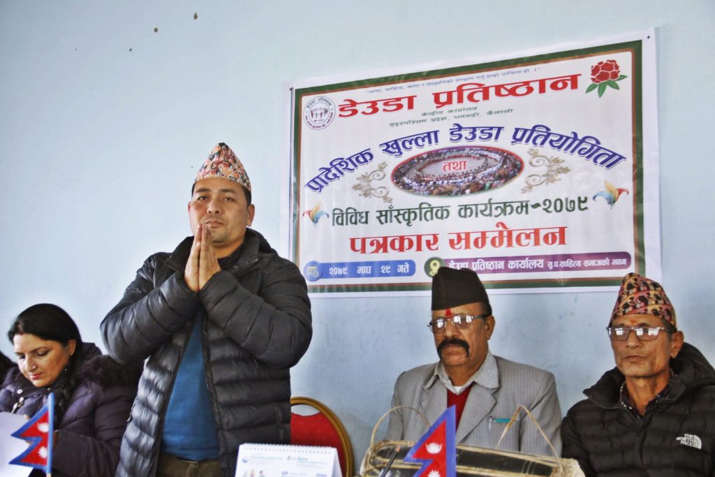 शुक्रबार धनगढीमा अयोजीत पत्रकार सम्मेलनमा प्रतिष्ठानका वरिष्ठ उपाध्यक्ष सुरत रावत ‘डोटेली कान्छाले आगामी माघमा प्रदेश स्तरकै सर्वाधिक धनराशिको देउडा प्रतियोगिता आयोजना गरिने बताएका हुन । उनले माघ २०, २१ र २२ गते तीन दिनसम्म प्रतियोगिताको आयोजना गरिने जानकारी गराए ।