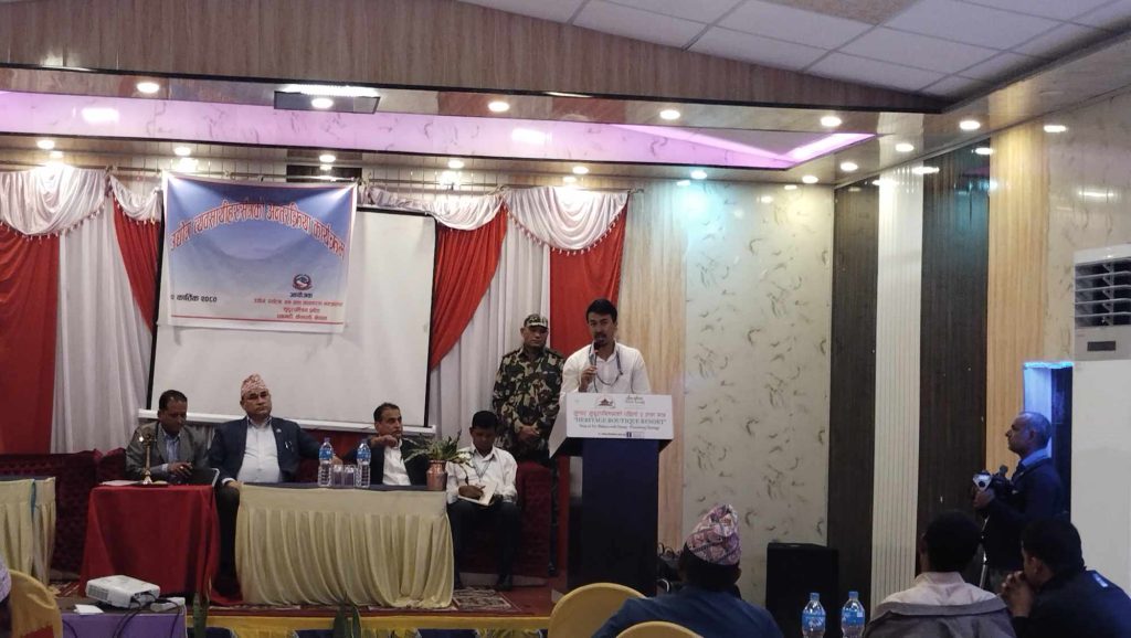 कार्तिक २२ धनगढी । सुदूरपश्चिम प्रदेश सरकारले लगानी सम्मेलन गर्ने भएको छ । सुदूरपश्चिम प्रदेशको उद्योग पर्यटन तथा बन बाताबरण मन्त्रालयले आयोजना गरेको उद्योग ब्याबसायीहरुसंगको अन्र्तक्रिया कार्यक्रम्मा सुदूरपश्चिम प्रदेश सरकारका मुख्य मन्त्री कमल शाहले प्रदेश सरकारले लगानी सम्मेलन गर्ने जानकारी गराएका हुन । बुधबार धनगढीमा आयोजीत अन्र्तक्रिया कार्यक्रम्का प्रमुख अतिथी शाहले फागुन २३ र २४ गते लगानी तथा विकास सम्मेलन गर्ने जानकारी गराएका हुन ।