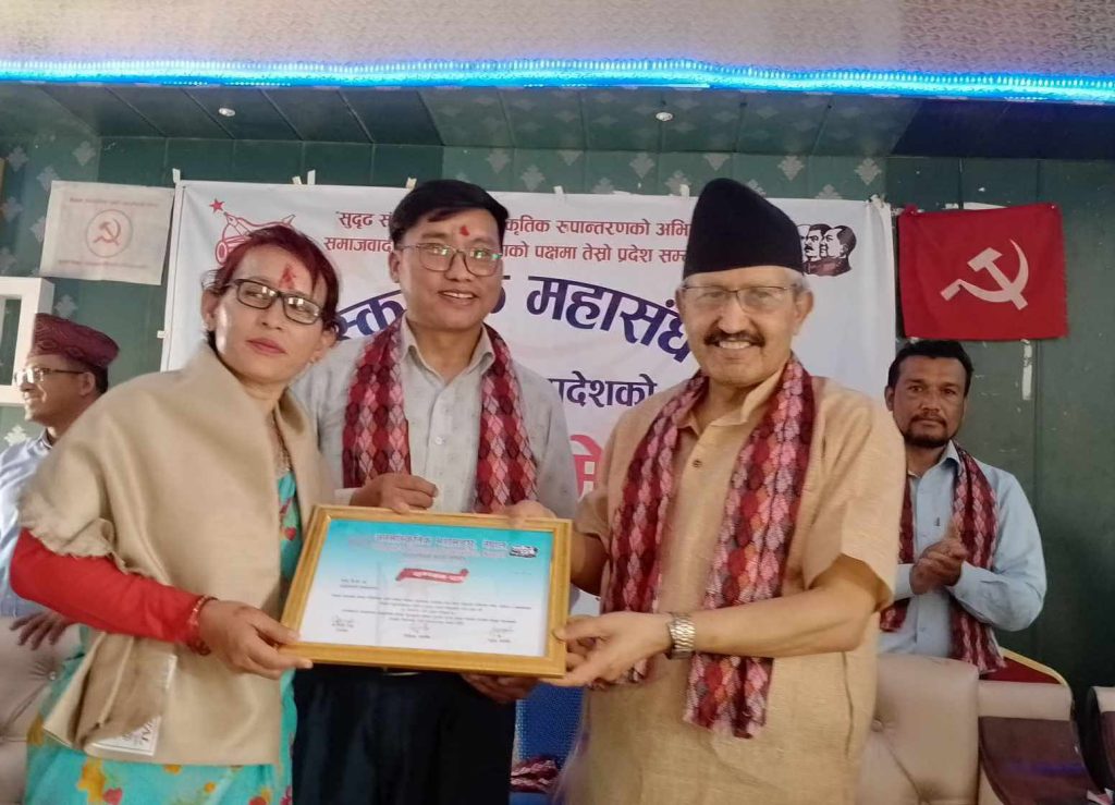 जेष्ठ ७ धनगढी । जनसाँस्कृतिक महासंघ नेपाल सुदूरपश्चिमद्धारा जनकलाकार बिष्ना बिसी (सपना) सम्मानीत भएकी छिन् । जनसाँस्कृतिक महासंघ नेपाल सुदूरपश्चिम प्रदेश समितिले जेष्ठ ५ गते शनिबारका दिन धनगढीमा आयोजना गरेको तेस्रो प्रदेश सम्मेलनमा बिसी सम्मानीत भएकी हुन् । नेकपा माओवादी केन्द्रका उपमहासचिव, सुदूरपश्चिम प्रदेश ईन्चार्ज एवम् प्रदेश सम्मेलनका प्रमुख अतिथि गिरीराज मणि पोख्रेलले जनयुद्धका जनकलाकारले साँस्कृतिक क्रान्ति गरेर लोकतान्त्रिक गणतन्त्र स्थापनामा खेलेको भूमिकाको प्रशंसा गर्दै दोसल्ला ओढाएर सम्मानपत्रले बिसीलाई सम्मान गरेका थिए ।