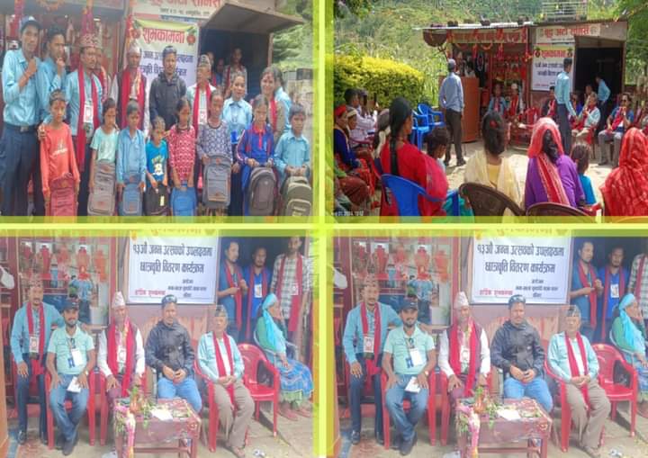 शिखर नगरपालिका वडा नम्बर १० भित्र रहेका सात वटा विद्यालय सिद्धेश्वर माद्यामिक बिध्यालय ,आदर्श प्राथमिक विधालय , बान्डोरिसैन माद्यामिक विधालय , भुमरीमा आधारभुत विधालय ,भवानी आधारभुत विधालय ,सरस्वती आधारभुत विधालय र भैरव आधारभुत विधालयका आठ वटा जेहेन्दार गरिव विद्यार्थीलाई मामा भान्जा सुनचाँदी गहना पसल लेखिएको आठ वटा स्कुल झोला १० वटा कापी ९ वटा कलम वितरण गरिएको हो ।