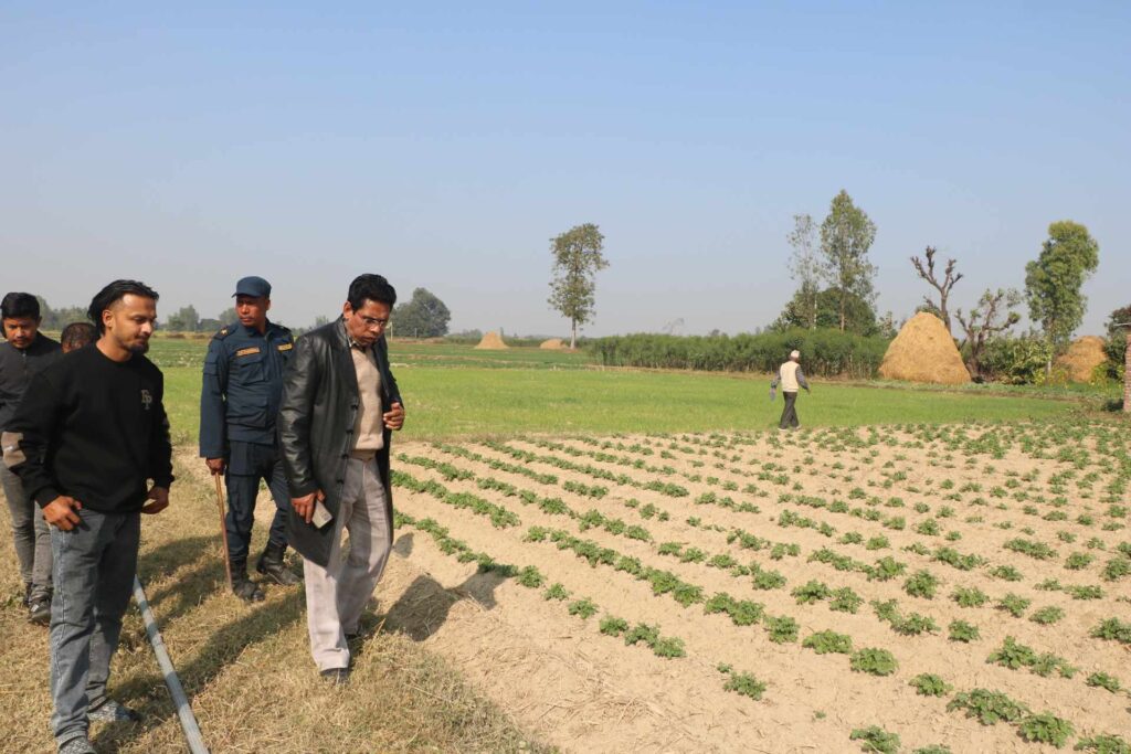 पौष ११ बाँके । नेपाल कम्युनिष्ट पार्टीका प्रवक्ता प्रकाण्ड सीले बाँकेको कृषि उत्पादनको अवलोकन गरेका छन । बुधवार पार्टीका प्रवक्ता प्रकाण्डले जिल्लाको खजुरामा संञ्चालन गरिएको १२ विगाह जमिनको कृषि उत्पादनको अनुगमन गरेका हुन । नेकपाको केन्द्रीय उत्पादन विभागले खजुरामा करिव १२ विगाह जग्गा लिजमा लिएर कृषि कार्य गरिरहेको छ ।