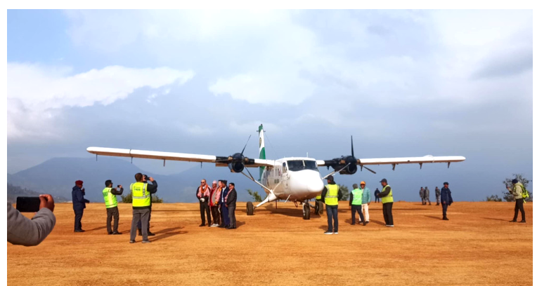 २०५८ सालमा निर्माण सम्पन्न भई सञ्चालनको तयारीमा रहेको विमानस्थलको रिपिटर टावर ध्वस्त भएपछि परीक्षण उडान समेत भर्न नपाउँदै बन्द भएको थियो । निर्माण सुरु भएको लामो समयसम्म गति लिन नसकेको विमानस्थलमा आर्थिक वर्ष २०८०÷०८१ मा विनियोजित बजेटले विमानस्थलमा ग्राभेल गरिए पछि परीक्षण उडान गरिएकोे हो ।