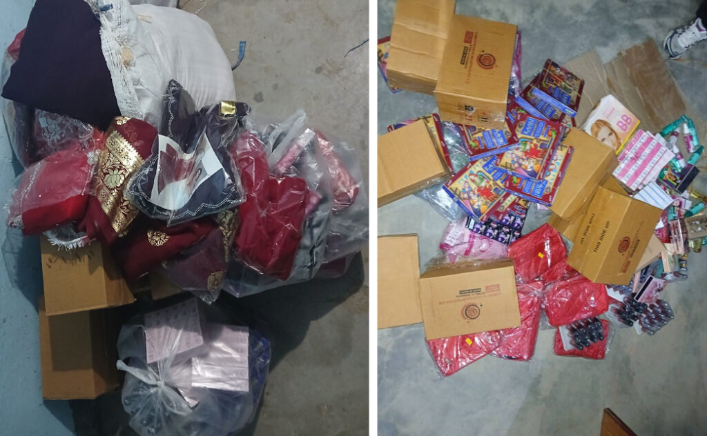 प्याज, सोमपापडी, चक्लेट, खुर्सानी, सिद्रा माछा लगायतका सामान जिल्ला प्रहरी कार्यालय कैलाली मातहत कार्यालयबाट खटिएको प्रहरी गस्ती टोलीले बेबारिसे अवस्थामा फेला पारी नियन्त्रणमा लिएको हो ।