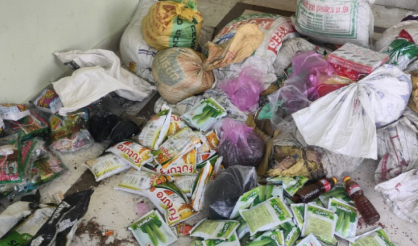भन्सार छलीको प्याज, चिनी, बिडी, सुर्ती, नरिवल, मसला, कारबन तेल, मटर, क्याण्डी, केक पाउडर, स्टिल तथा प्लाष्टिकका भाँडा वर्तन, बदाम, पेय पदार्थ, ब्याट्री, मोटर पाईप, ग्रिस वायल, प्लाष्टिक झिल्ली, सिद्रा माछा, कस्मेटिक लगायतका सामान जिल्ला प्रहरी कार्यालय कैलाली मातहत कार्यालयबाट खटिएको प्रहरी गस्ती टोलीले बेबारिसे अवस्थामा सोमवार फेला पारी नियन्त्रणमा लिएको प्रहरीले जानकारी गराएको हो ।
