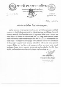 जेठ १९ धनगढी । कैलालीको धनगढी उपमहानगरपालिकामा २२ गते सार्वजनिक बिदा दिइएको छ । धनगढी उपमहानगरपालिकाको कार्यपालिका बैठकले गरेको निर्णय अनुसार २२ गते सार्वजनिक बिदा दिइएको हो ।