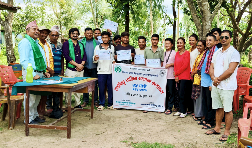 उनले यस्ता सकारात्मक कामको प्रचार गरी अन्य समूहलाई पनि प्रोत्साहित गर्नुपर्ने बताए । कार्यक्रममा वडा नम्बरं ७ का अध्यक्ष आशाराम चौधरीले यस्ता सीपमूलक तालिमले युवालाई उद्यमशील र आत्मनिर्भर बनाउने बताउँदै आवश्यक सहयोगका लागि वडा र पालिकाबाट समन्वय गर्ने प्रतिबद्धता व्यक्त गर ।