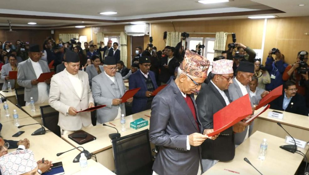 फागुन २५ धनगढी । राष्ट्रिय सभाका नवनिर्वाचित सदस्यहरूले पद तथा गोपनीयताको शपथ लिएका छन । सिंहदरबार स्थित कानुन,न्याय तथा मानव अधिकार समितिको हलमा आयोजित समारोहमा राष्ट्रिय सभा अध्यक्ष नारायण दाहाल समक्ष नव निर्वाचित सदस्यहरूले शपथ लिएका हुन् ।