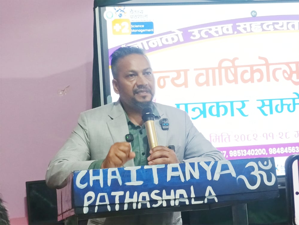 शिक्षा र संस्कारको संगम, वेद र विज्ञानको संयोजन तथा प्रकृति र संस्कृतिको सम्मान गर्ने शैक्षिक दर्शनलाई आत्मसात गर्दै चैतन्य पाठशालाले स्थापनाकाल देखि गुणस्तरीय शिक्षा प्रदान गर्दै आएको छ । पत्रकार सम्मेलनमा सुदूरपश्चिम लोक सांस्कृतिक समाजको पन्चेबाजा, मगर समुदायको पन्चेबाजा, थारु संस्कृति प्रस्तुति, राना होली, अखण्ड सेवा समाजको होली, खप्तड क्षेत्रका लोकसंस्कृति संरक्षण समूहको भुवा प्रस्तुति लगायत विभिन्न सांस्कृतिक कार्यक्रम प्रस्तुत गरिने उनले बताए ।