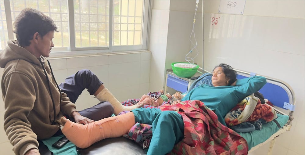 श्रीमती विष्णु उपचारका लागि जिल्ला अस्ूपताल पुगेपछि अहिले उनीहरु दुवै जना दम्पत्तीको जिल्ला अस्पतालमा उपचार भइरहेको छ । चिकित्सकहरुले दुवै जना दम्पत्तीको उपचार गर्न तथा विष्णुको खुट्टामा रड हाल्न ५० हजार बढी खर्च लाग्ने बताएका छन् । घरका मुली श्रीमान् श्रीमती दुवै जना घाइते भएर अस्पतालको शैय्यामा हुँदा घरपरिवार बिचल्लीमा परेको छ । पूर्वेको घरमा एक छोरा र तीन छोरी र बुवा रहेका छन् ।