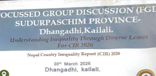 चैत्र १८ धनगढी । समानता प्रतिवेदन २०२६ सम्बन्धी परामर्श तथा कार्यशाला कार्यक्रम सम्पन्न भएको छ । गैर सरकारी संस्था महासंघ नेपालको आयोजनामा चैत्र १६ र १७ गते दुई दिन धनगढीमा आयोजना गरिएको समानता प्रतिवेदन २०२६ सम्बन्धी परामर्श तथा कार्यशाला कार्यक्रम सम्पन्न भएको हो । गैरसरकारी संस्था महासंघ प्रदेश समिति अध्यक्ष देवी प्रसाद खनालले,कार्यक्रममा सुदूरपश्चिम प्रदेशमा विद्यमान सामाजिक, आर्थिक तथा क्षेत्रगत असमानताका विविध पक्षहरूबारे गहन छलफल गरिएको बताए ।
